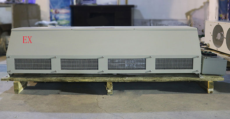 4、防爆熱風幕由離心風機、上風斗、下風斗、換熱器等部件組成。分熱水型、蒸汽型、冷熱水型三種;分明裝、暗裝二大類。